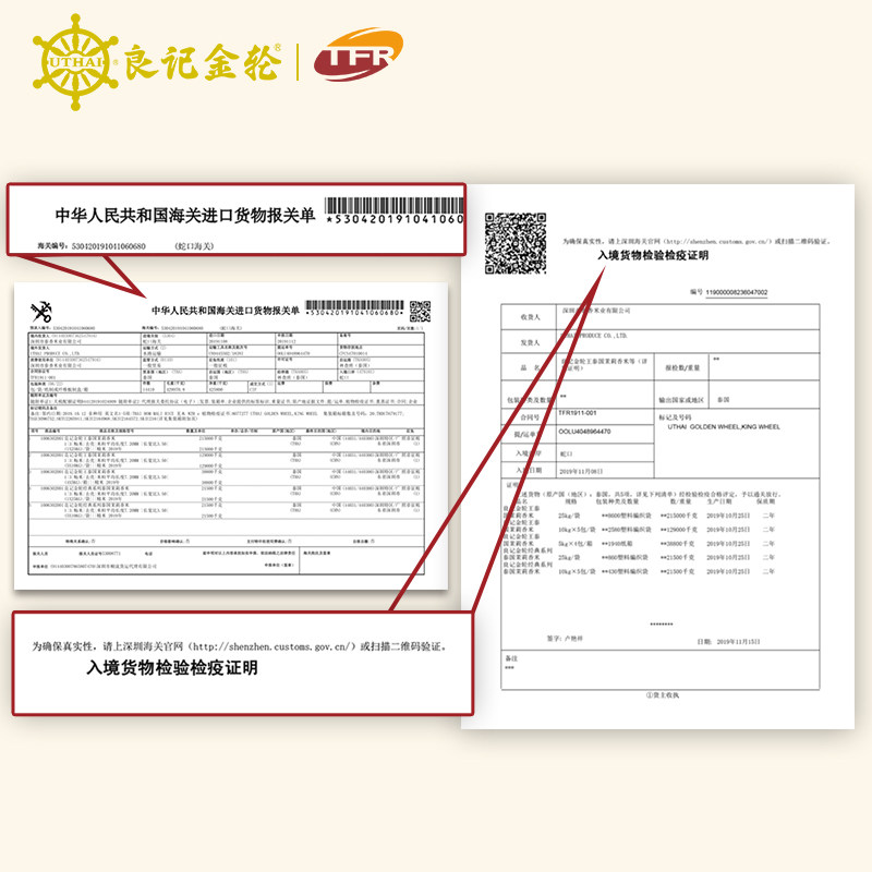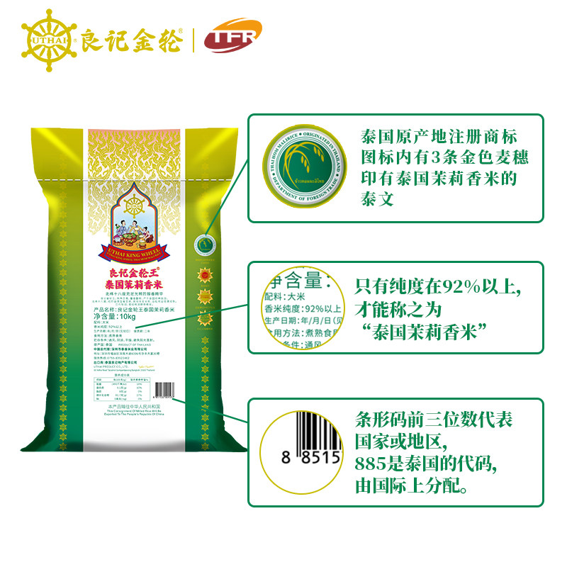 Liangji Golden Wheel King Thai Jasmine fragrant rice 10kg imported Thai fragrant rice Long grain rice 20 catty Thai rice