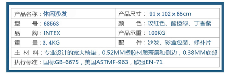 Original INTEX high-grade flocked single sofa lazy lounge chair inflatable sofa