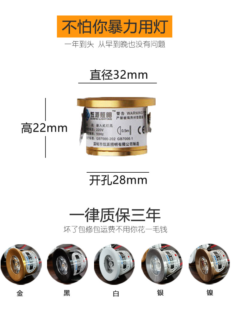 (1w opening 28mm) mini spotlight led showcase light 3cm small hole light cat eye light small downlight embedded