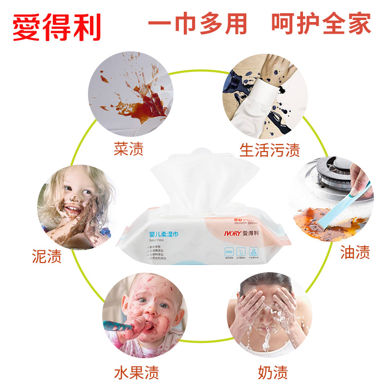 Aideli baby soft wet wipes with lid Newborn hand mouth fragrance-free pp baby special cotton soft wet tissue 80 pumping pieces