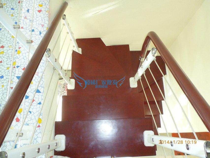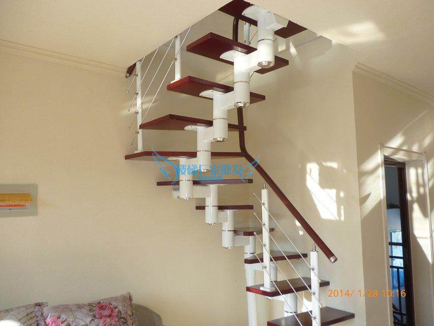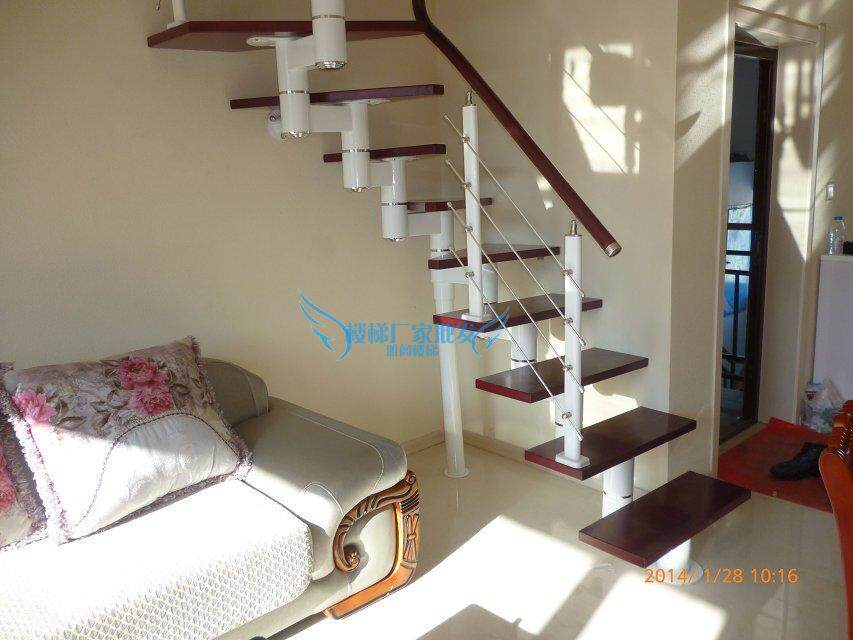 Interior Home Loft Stairs Steel Wood Stairs U Type Staircase Duplex Stairway Solid Wood Pedal Custom Finished Product