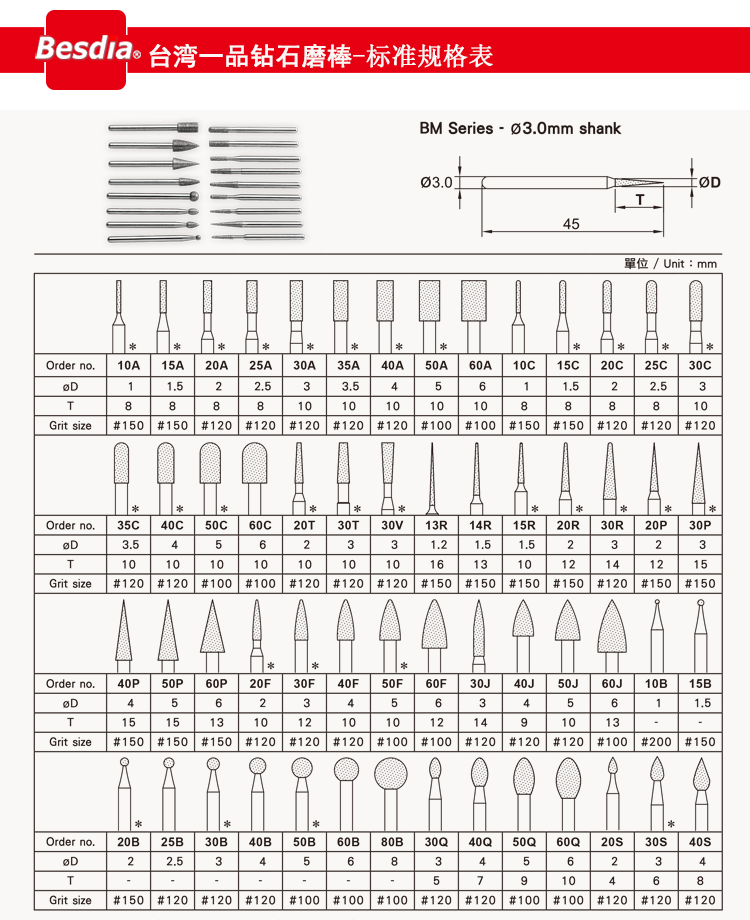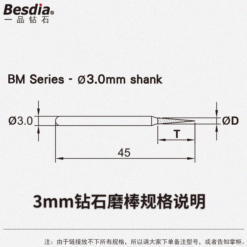 Taiwan Besdia Diamond grinding rod BMA-30 alloy grinding head Diamond grinding needle mold Dental grinding head