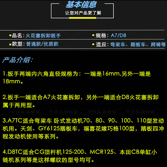 Motorcycle spark plug socket wrench disassembly spark plug dual use two ends A7TC D8TC general maintenance and maintenance