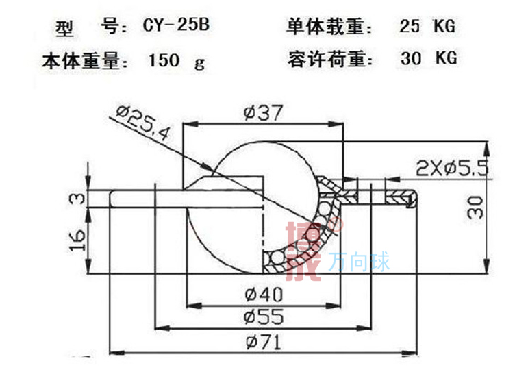 Thicken flying dish wheel CY - 25B ball ball bearing one inch bull eye ball ball wheel WB - 01 conveys bull eye wheel