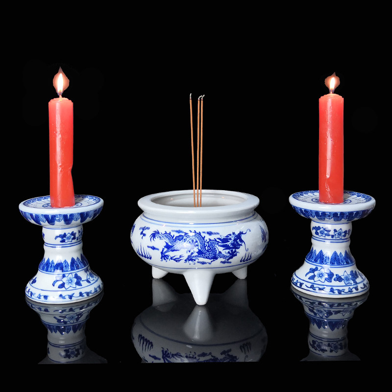 Jingdezhen ceramics blue and white dragon pattern three-legged incense burner Buddha antique celadon ancestor worship incense burner candlestick Buddha hall