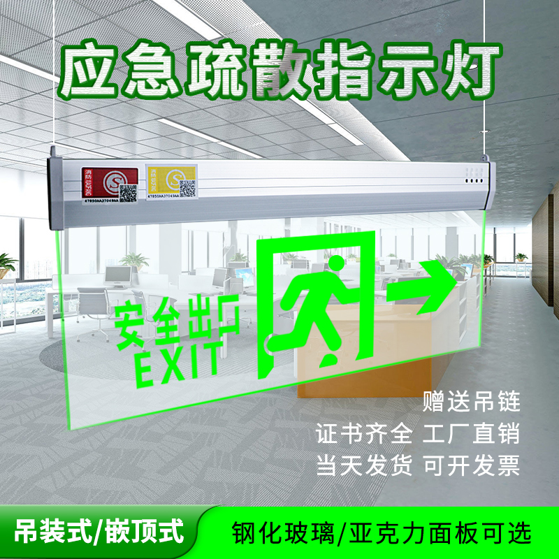 Glass tag fire emergency lighting transparent led evacuation sign acrylic toughened safety exit sign 36V