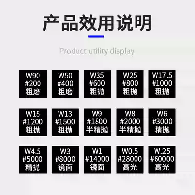 #200 W90#400 W50#600 W35#800 W25#1000 W17 5#1200 W15#1500 W
