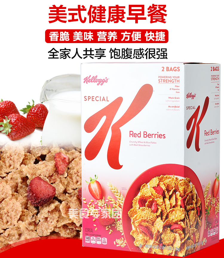 American import Carrefour special K Crispy Strawberry Cereal Ready-to-eat brewing drink breakfast 1200g
