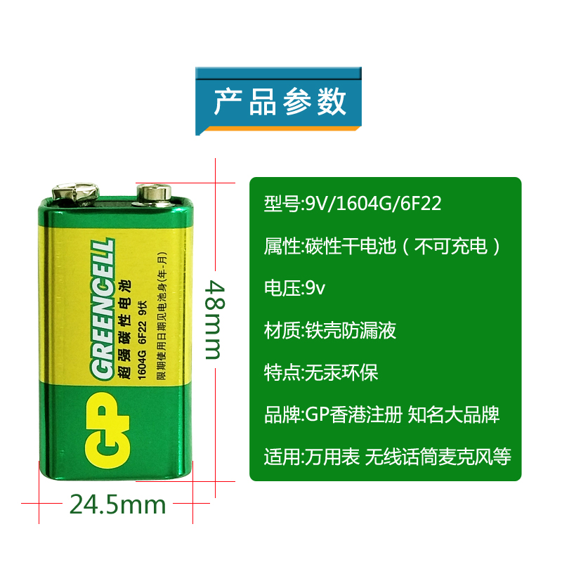 GP Superbar 9V Battery 6F22 1604G Mike Remote Control Smoke Sensation SQUARE LAMINATED NINE VOLT BATTERY