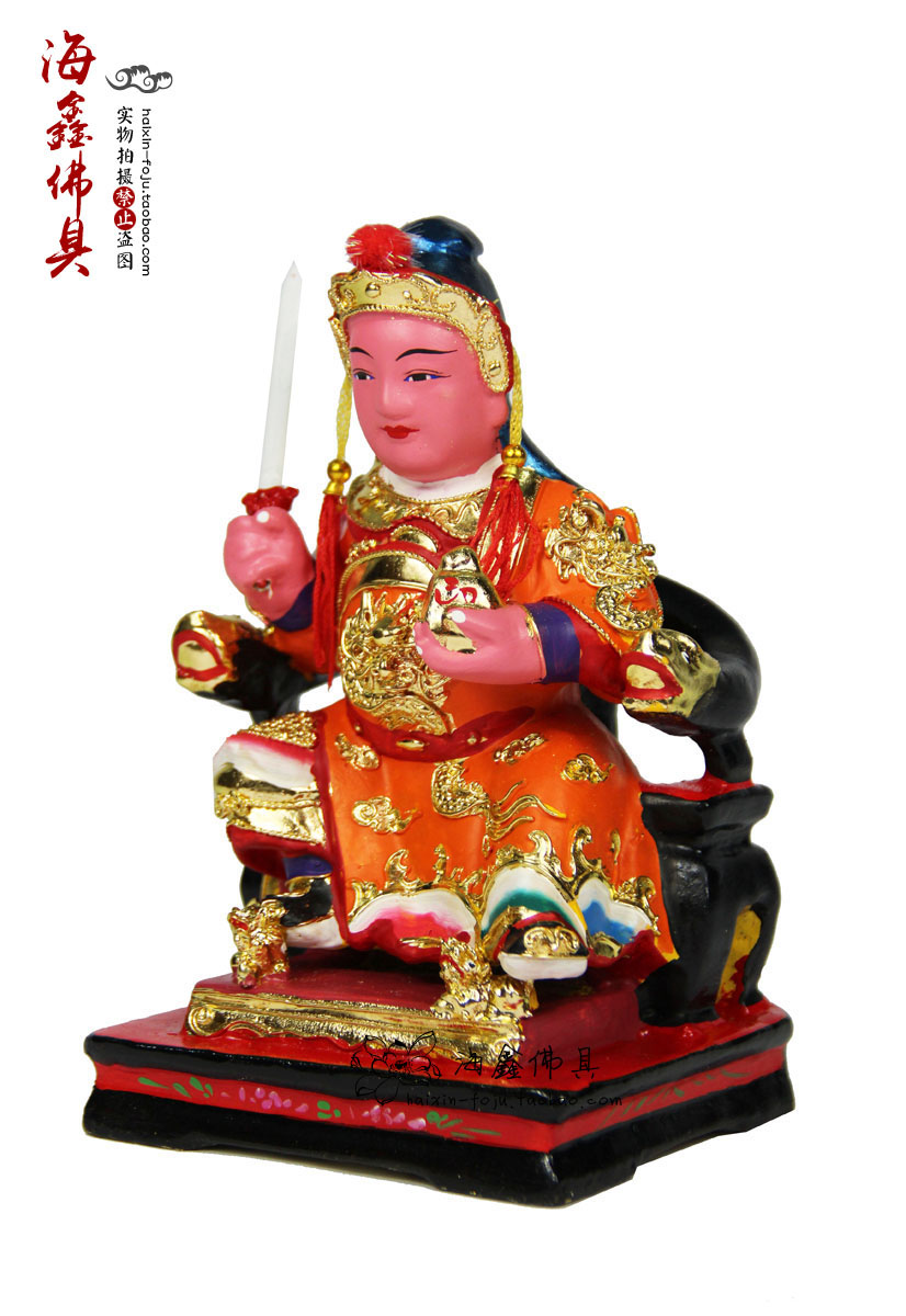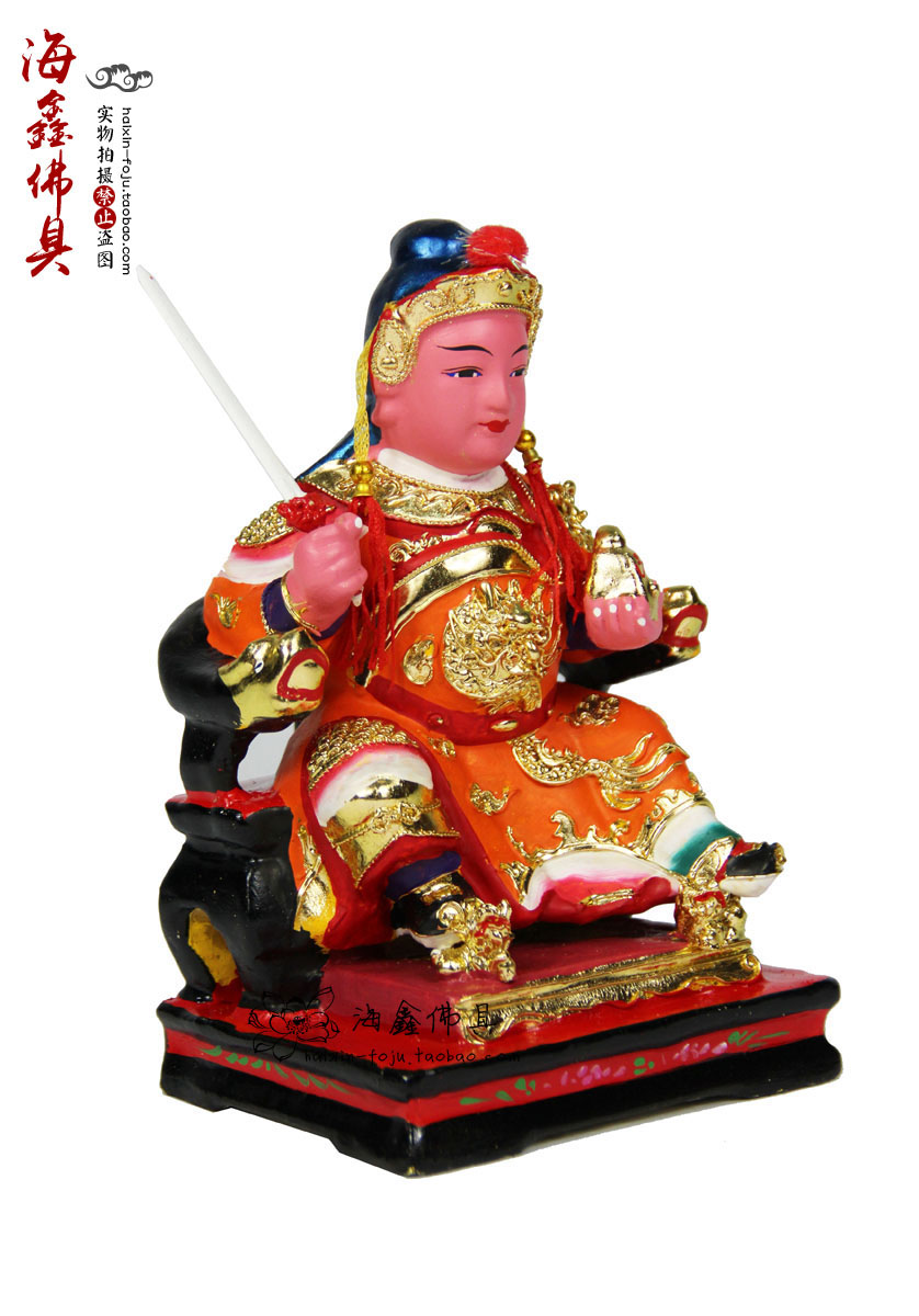 Haixin solemn Buddha statue, camphor wood carving, Taiwan color gold, civil and military general sitting posture 8 10 12 16 19 inches