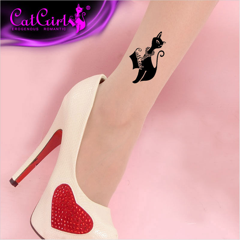 Japanese Harajuku fake tattoo tattoo jacquard cute cat stockings rompers not easy to snag silk sexy thin inner pantyhose