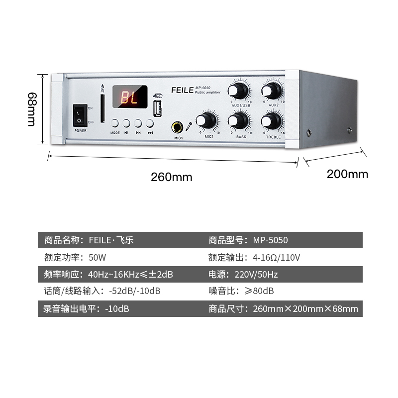 Public broadcast background music with USB partition pressurized amplifier suction trumpet sound column household school shop