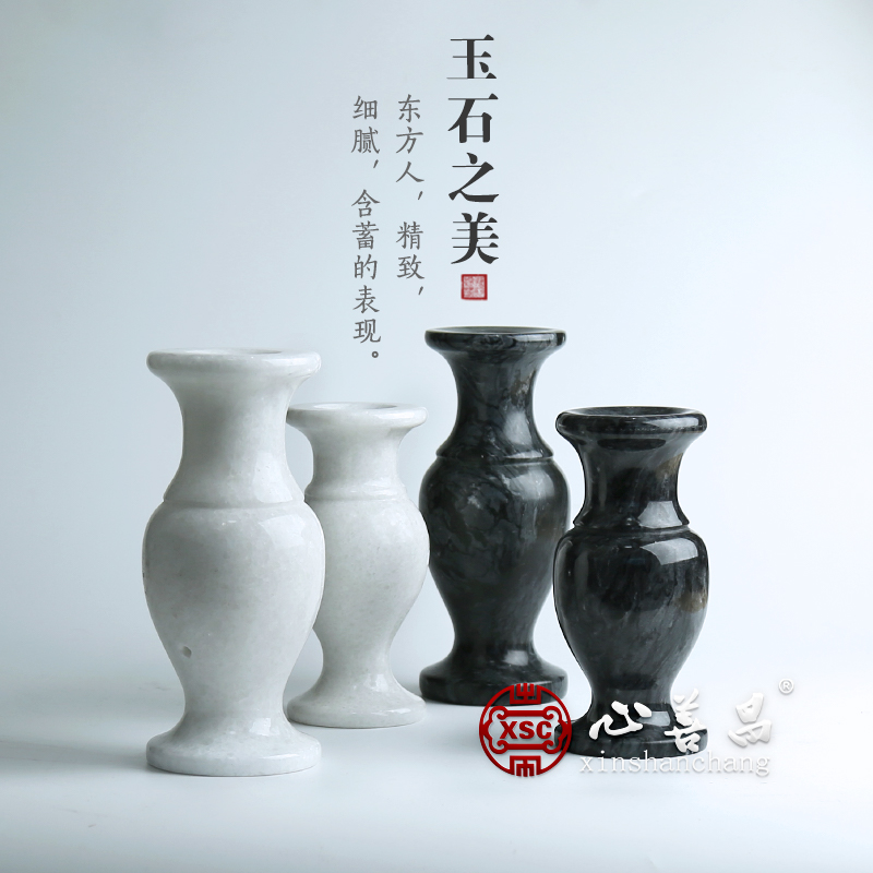 Natural Han white jade vase pair of stone cemetery supplies marble material engraving sacrificial offerings with burial objects
