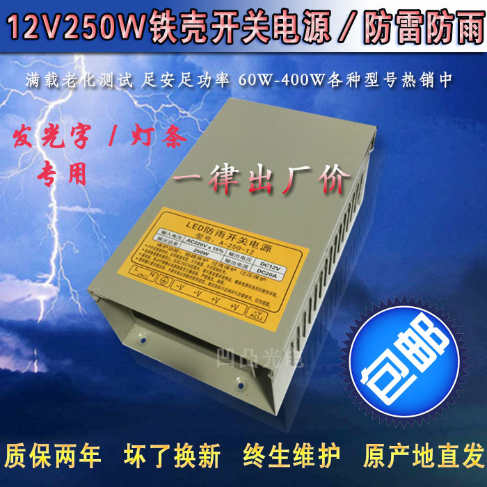 12V150W luminous word rainproof power switch LED waterproof 12V transformer luminous word lamp with power supply