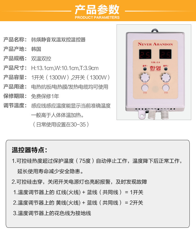 Chongguan promotion Korea mute double temperature double cut thermostat heating plate film heating kang geothermal