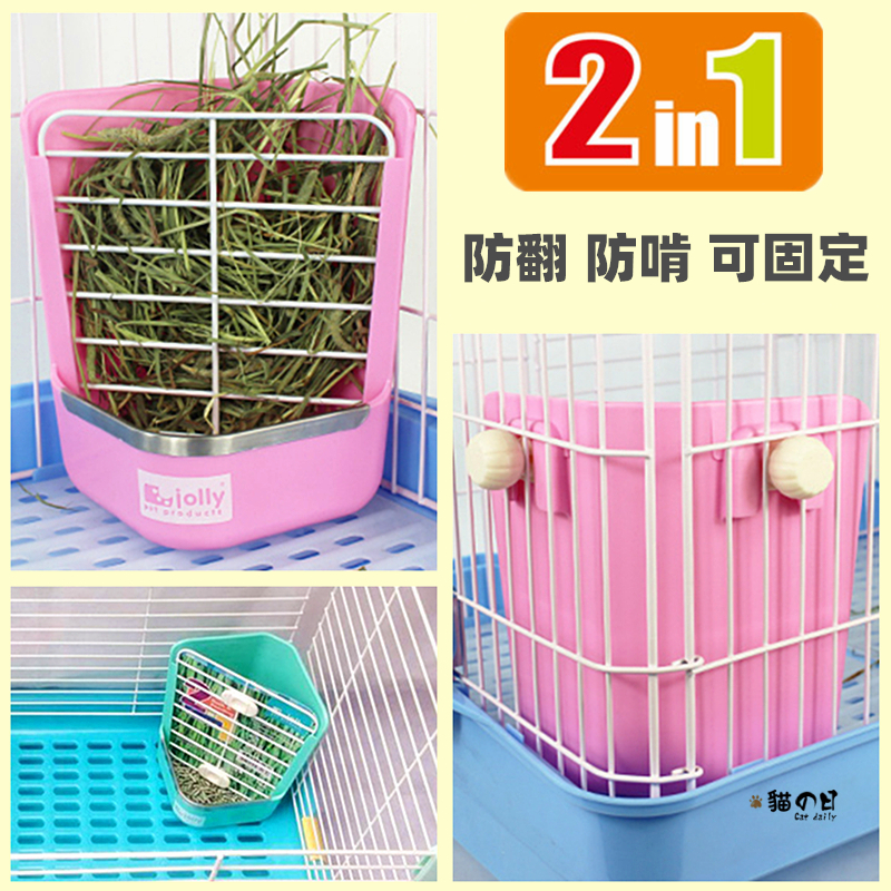 Jolly Grass Rack Two-in-one Food Basin Bowl Rabbit Dragon Cat Guinea Pig Fed Grass Stock Trough Anti-Piss Nibble-Proof Bite Fixation