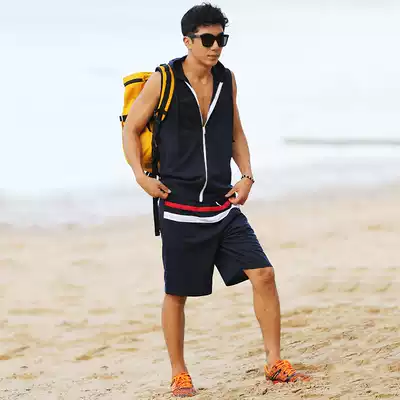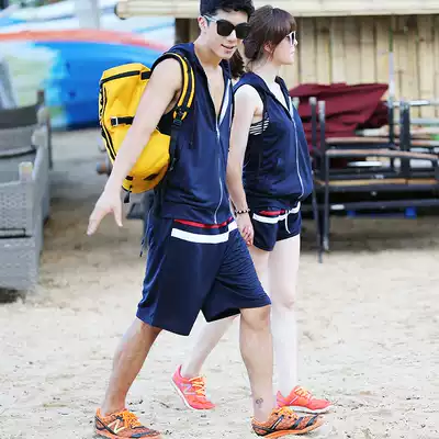 Korean shorts for men and women couples, Tide brand beach sports leisure straight tube five-point pants loose wear blue summer