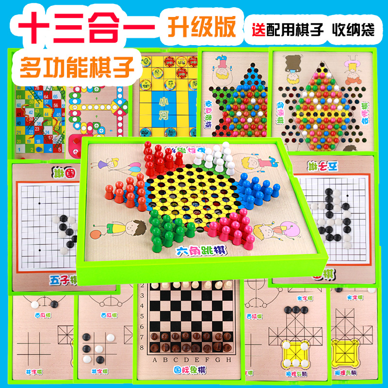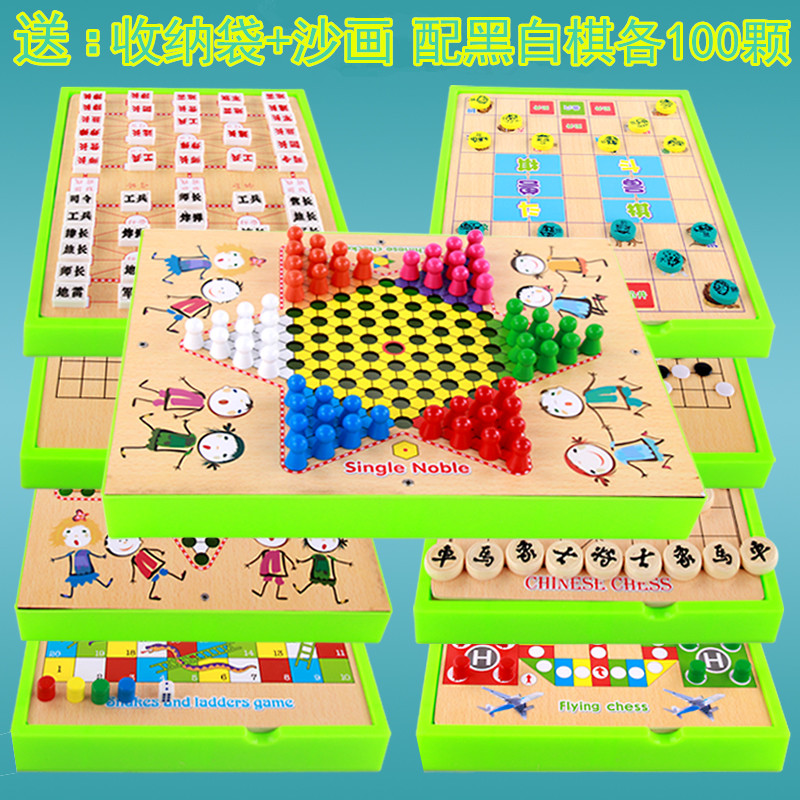 Chess Go Military Flag Chess Wooden Quality Checkers Flight Chess Seven All-in-one Chess Parenting Adult Puzzle Toys