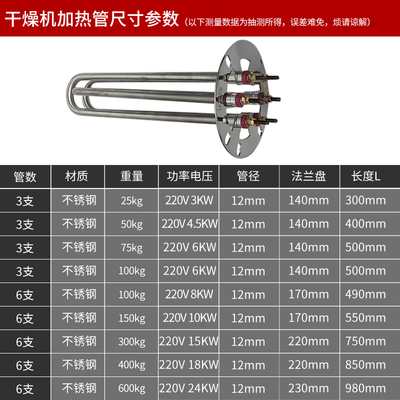 Injection molding machine hopper electric heating 25 25 5075 100KG vertical dehumidifier baker electric heating tube 200 kg