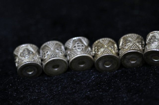 925 silver made of old Tibetan Buddhist pearl accessories Auspicious Knot Barrel Beads Pair of holes 0-95cm 85cm diameter is 0