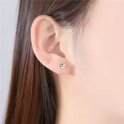 s99 sterling silver earrings female Korean version of simple bead earrings men's foot Silver Bean Bean ear needle hypoallergenic handmade earrings