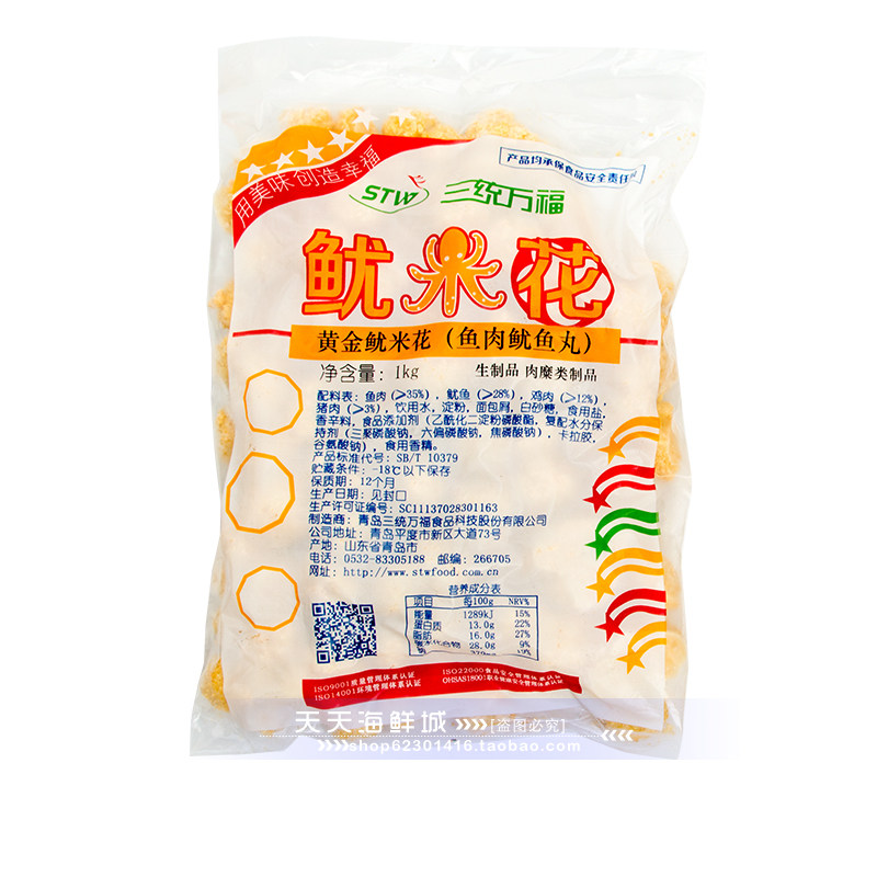 Three Tong Wanfu gold squid flower squid ball squid flower wrapped powder frozen semi-finished Western fried snack 1Kg