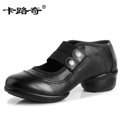 Caluqi middle-aged and elderly dance shoes leather women's four seasons dancing shoes soft bottom breathable new sailor square dance shoes