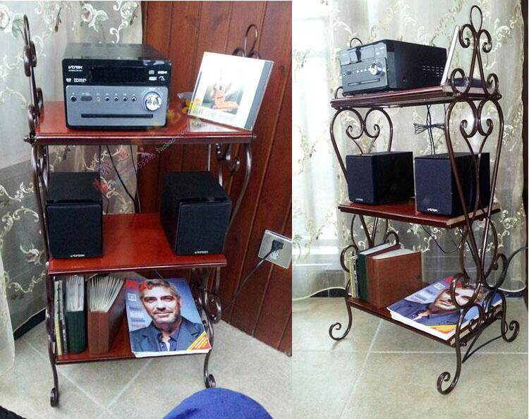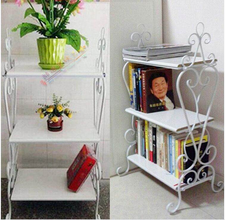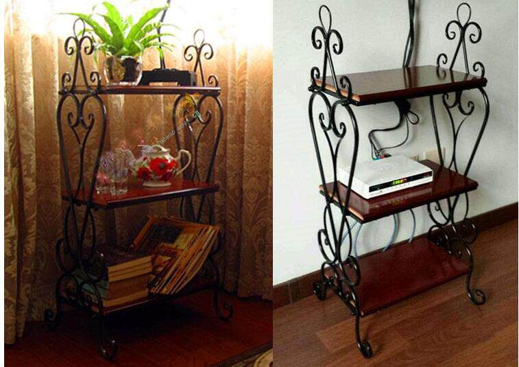Eurostyle retro iron wood shelving ground floor three-layer bookcase living-room sofa next to shelf magazine shelf Phone shelf
