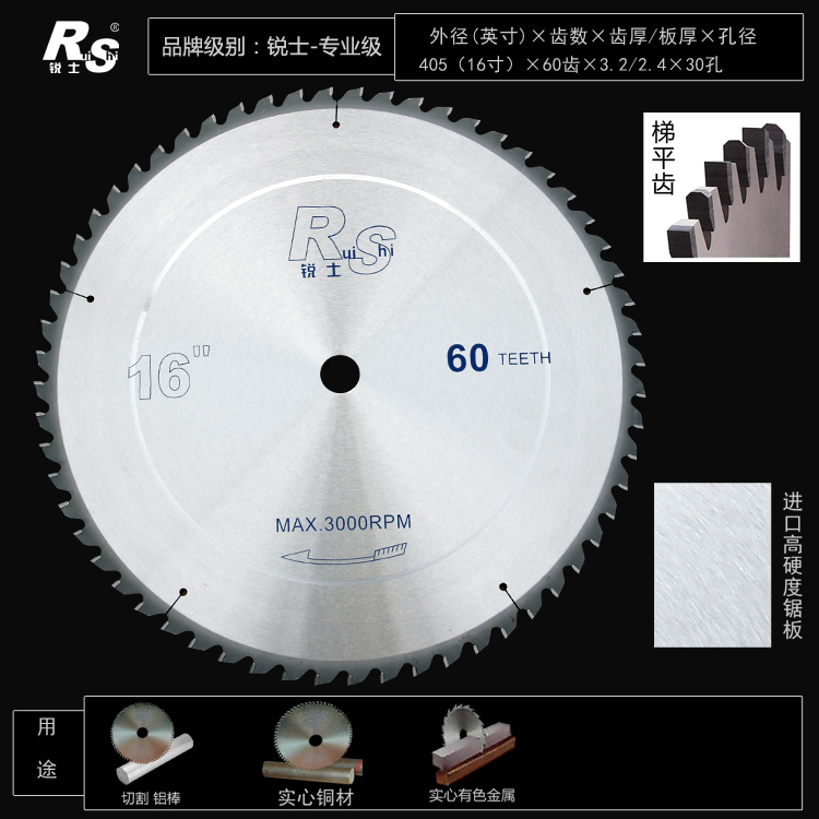 Ruishi imported CRAD thickened aluminum extrusion material Aluminum alloy solid aluminum rod aluminum plate cutting copper rod Plastic special saw blade