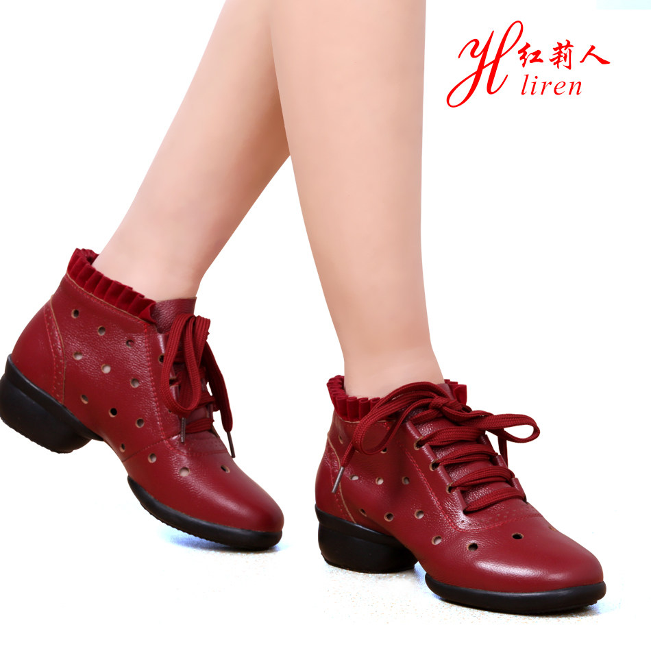Hongliren's new square dance shoes leather women's soft-soled adult sailor dancing shoes summer outer wear middle-heeled dance shoes