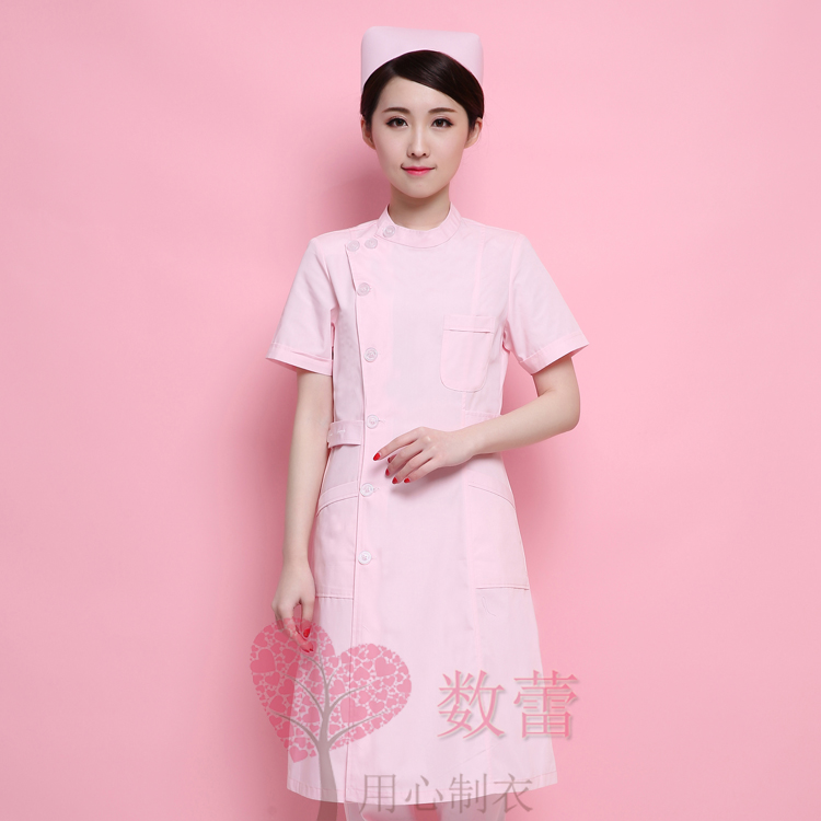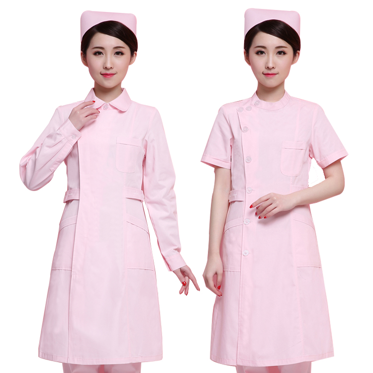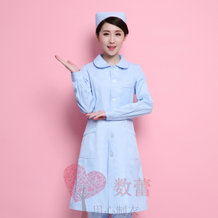 Health school laboratory clothes summer clothes short-sleeved female doll collar right-sided nurse clothes long-sleeved white blue pink winter pharmacy clothes