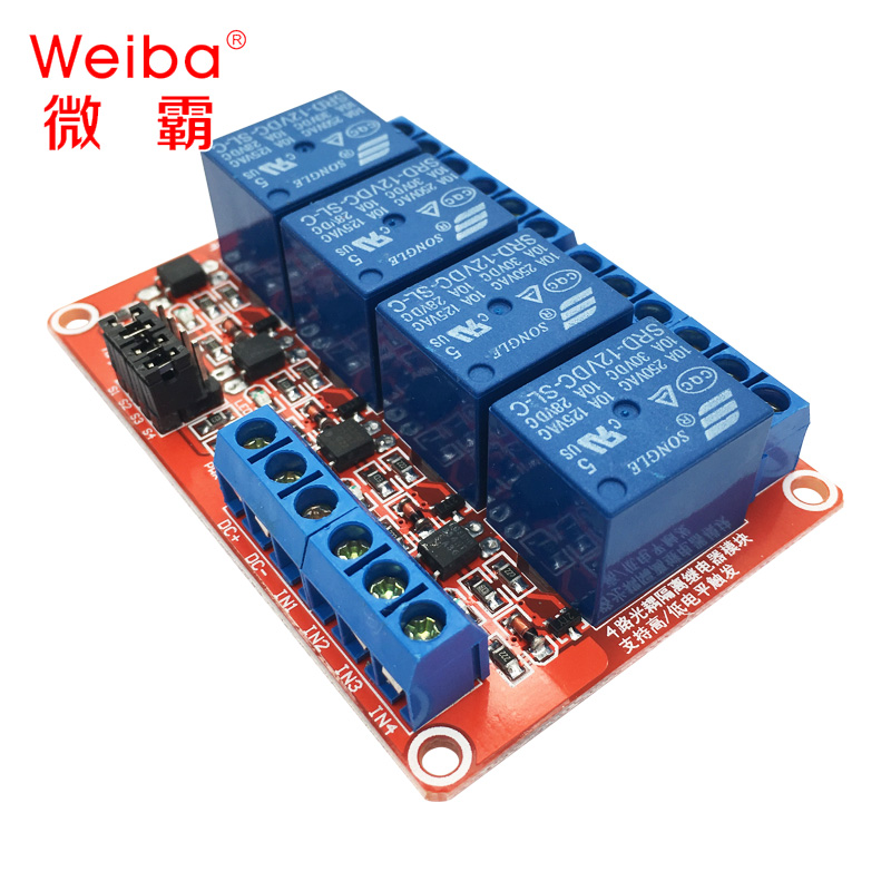 Hot selling 4-way 5V12V24V relay module with optocoupler isolation high and low level trigger relay extension plate