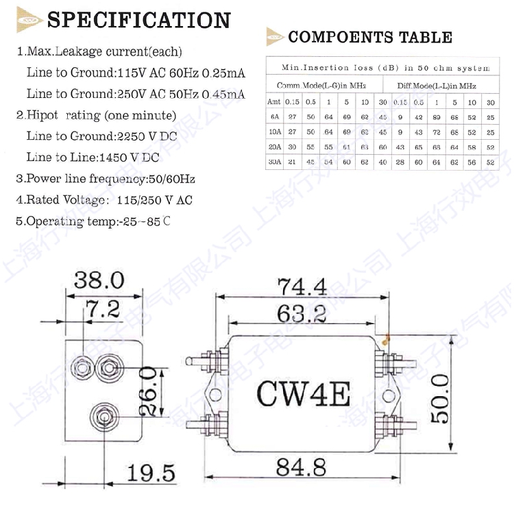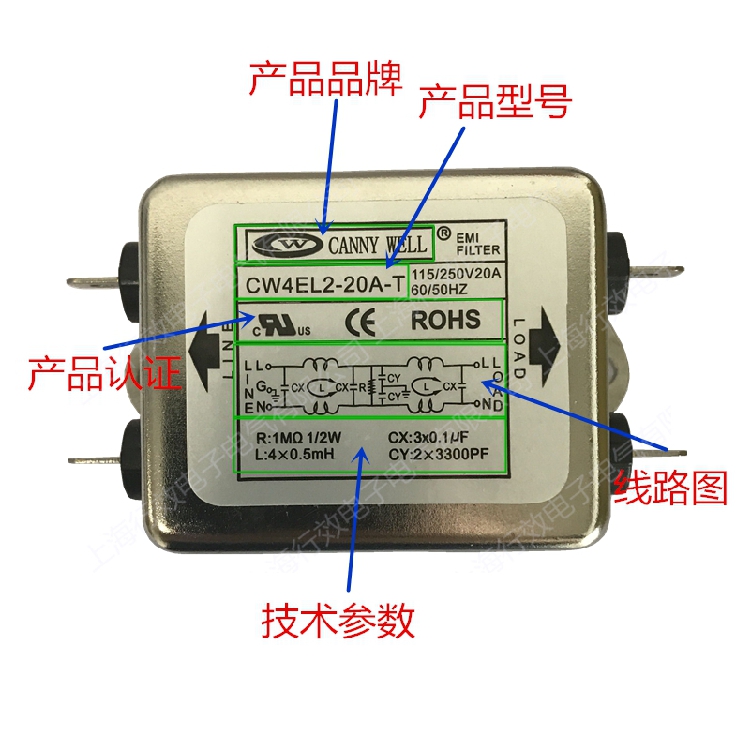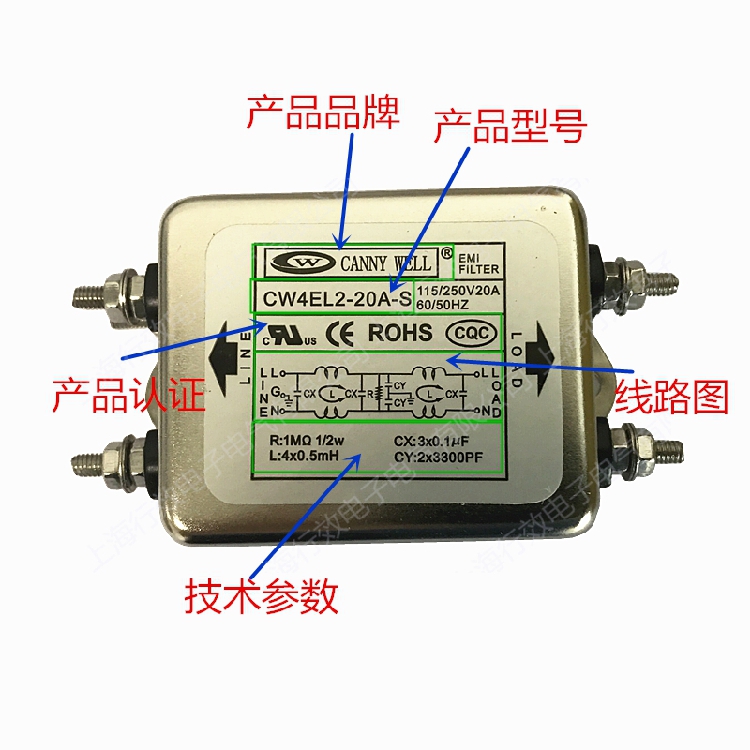 Canny WELL single phase anti-interference AC power filter CW4EL2-20A-T S