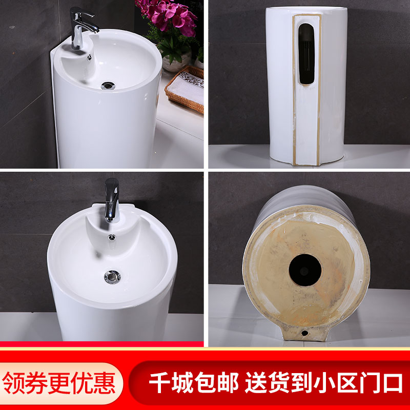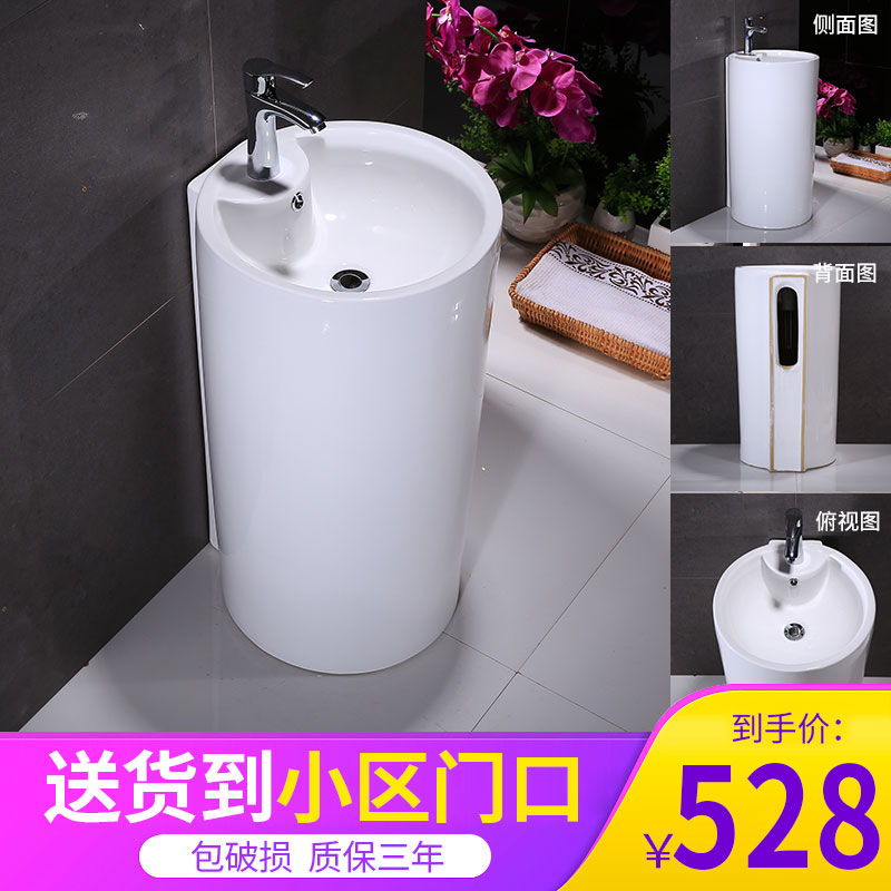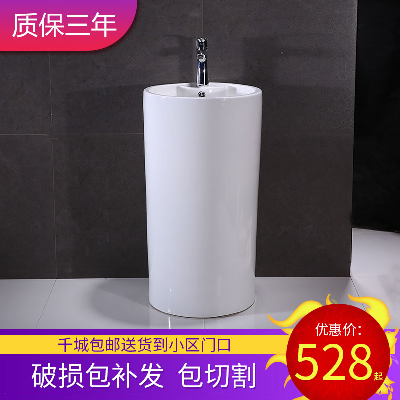 One-piece column basin Ceramic wash basin Balcony floor-to-ceiling one-piece basin Powder room sink Round bathroom basin