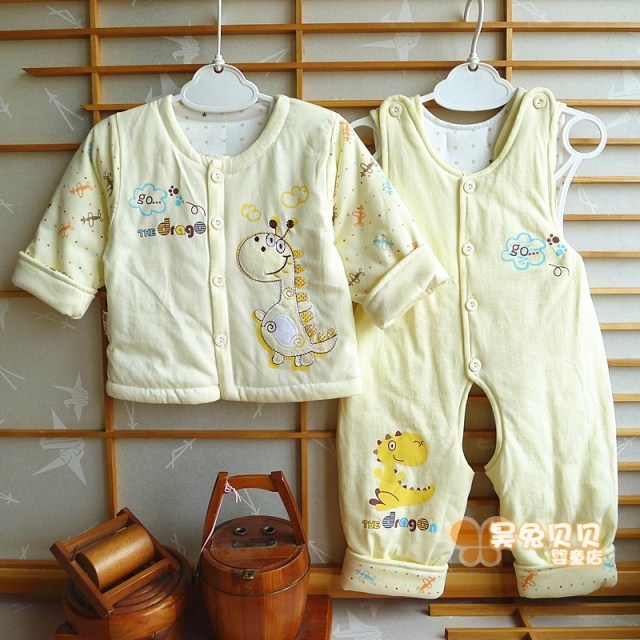 Ouyuan men's and women's baby thin cotton two-piece suit baby quilted clothes holding baby bag pants children's spring clothes