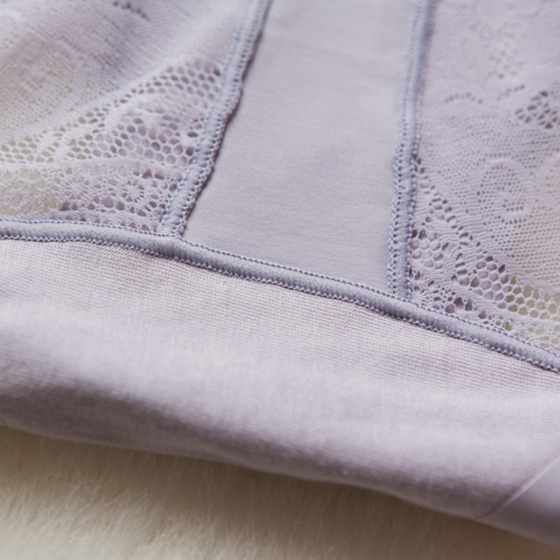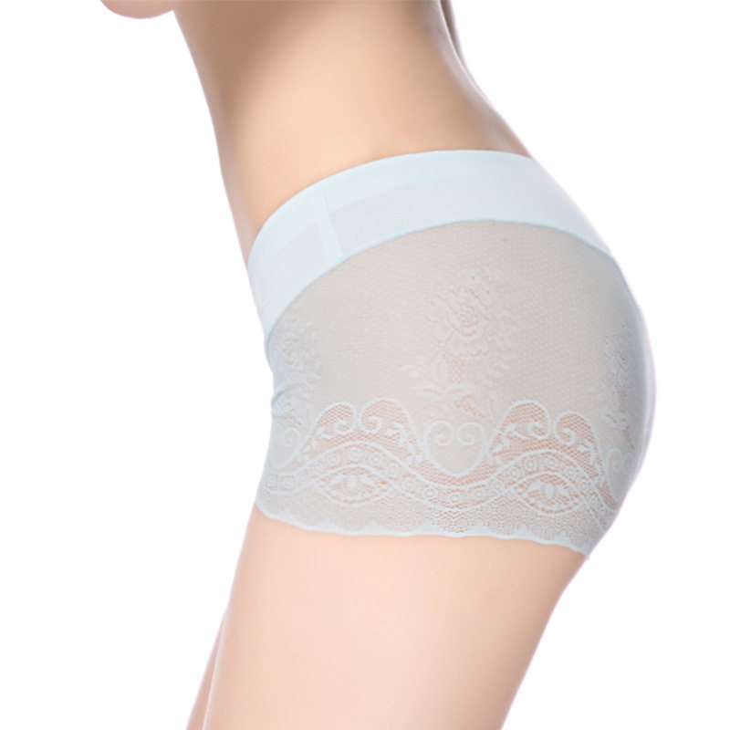 Spring and summer new sexy one-piece seamless panties women's transparent lace mid-waist cotton modal triangle shorts