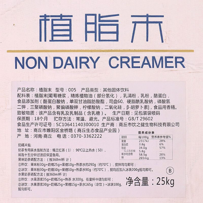 Shield Emperor creamer powder Milk tea raw material Creamer powder 25kg Commercial 005 milk tea shop special creamer milk tea companion