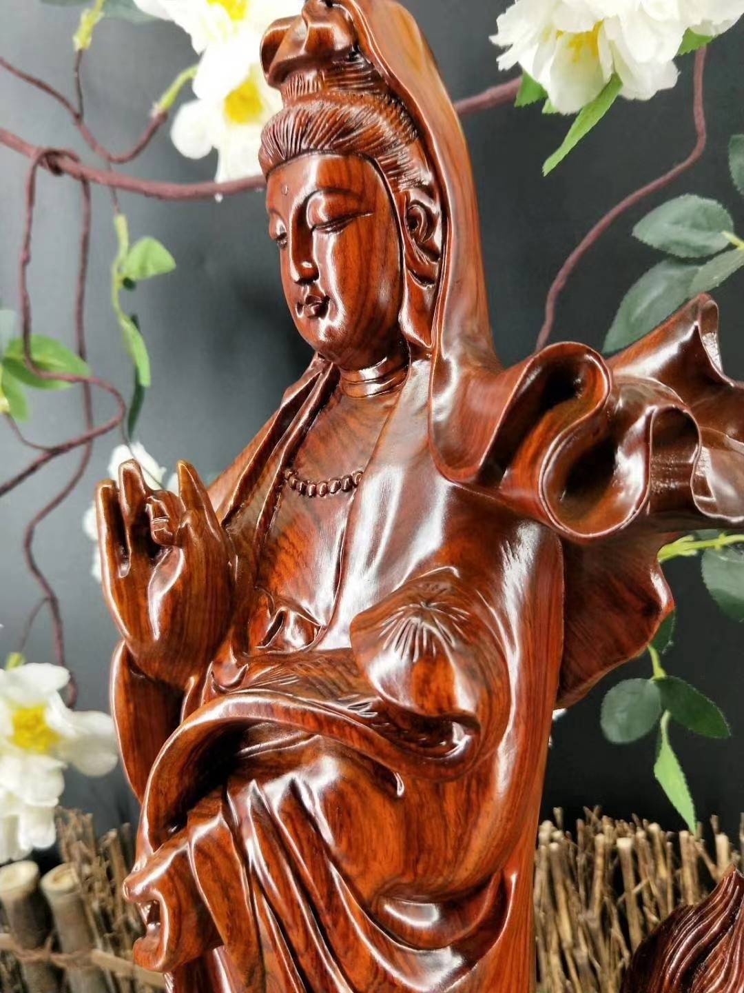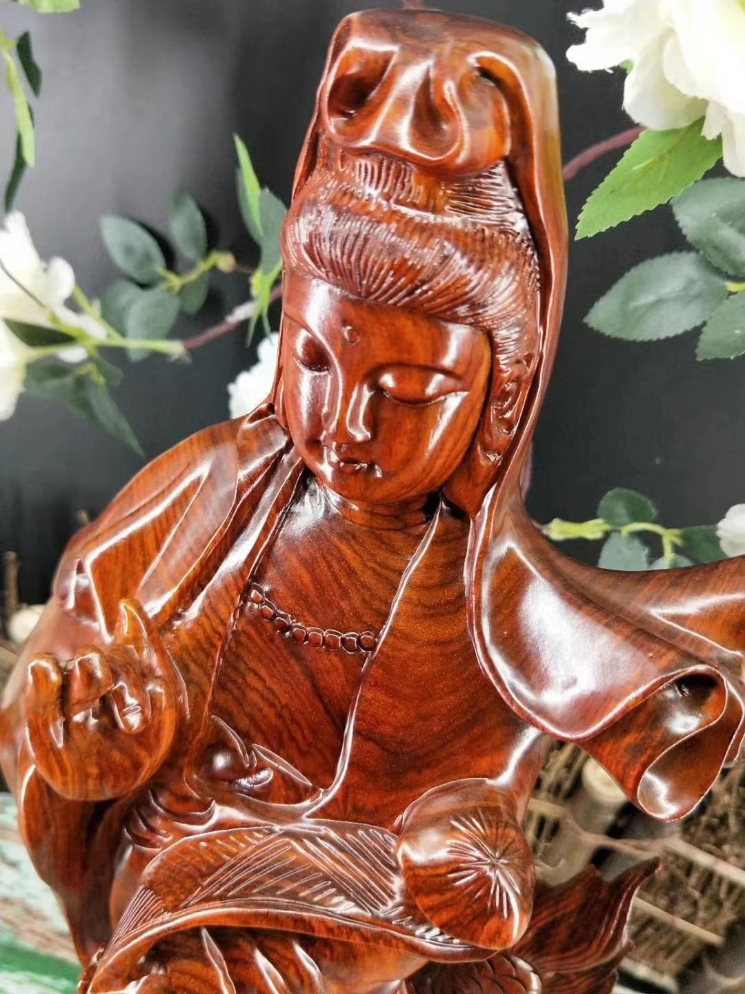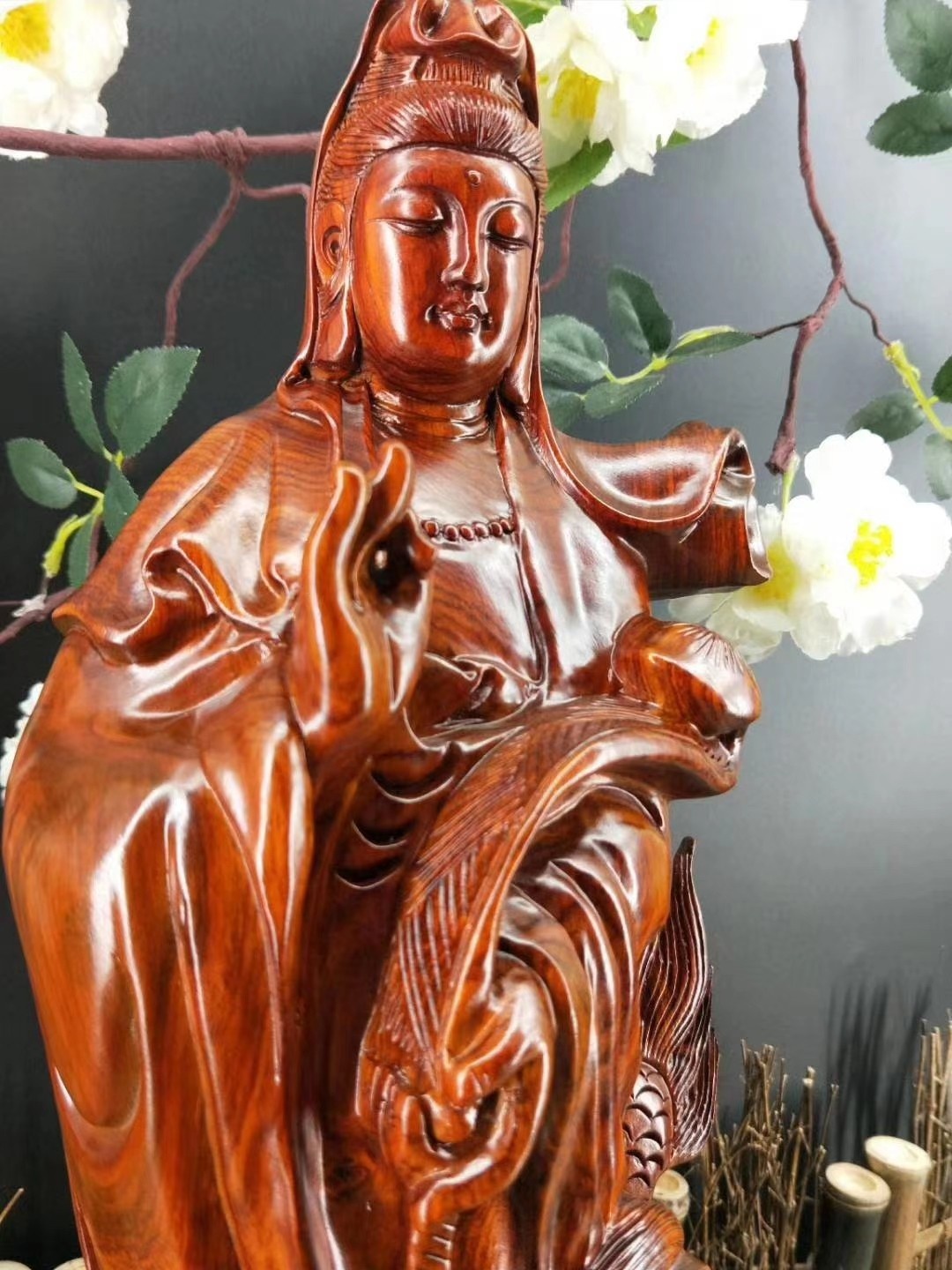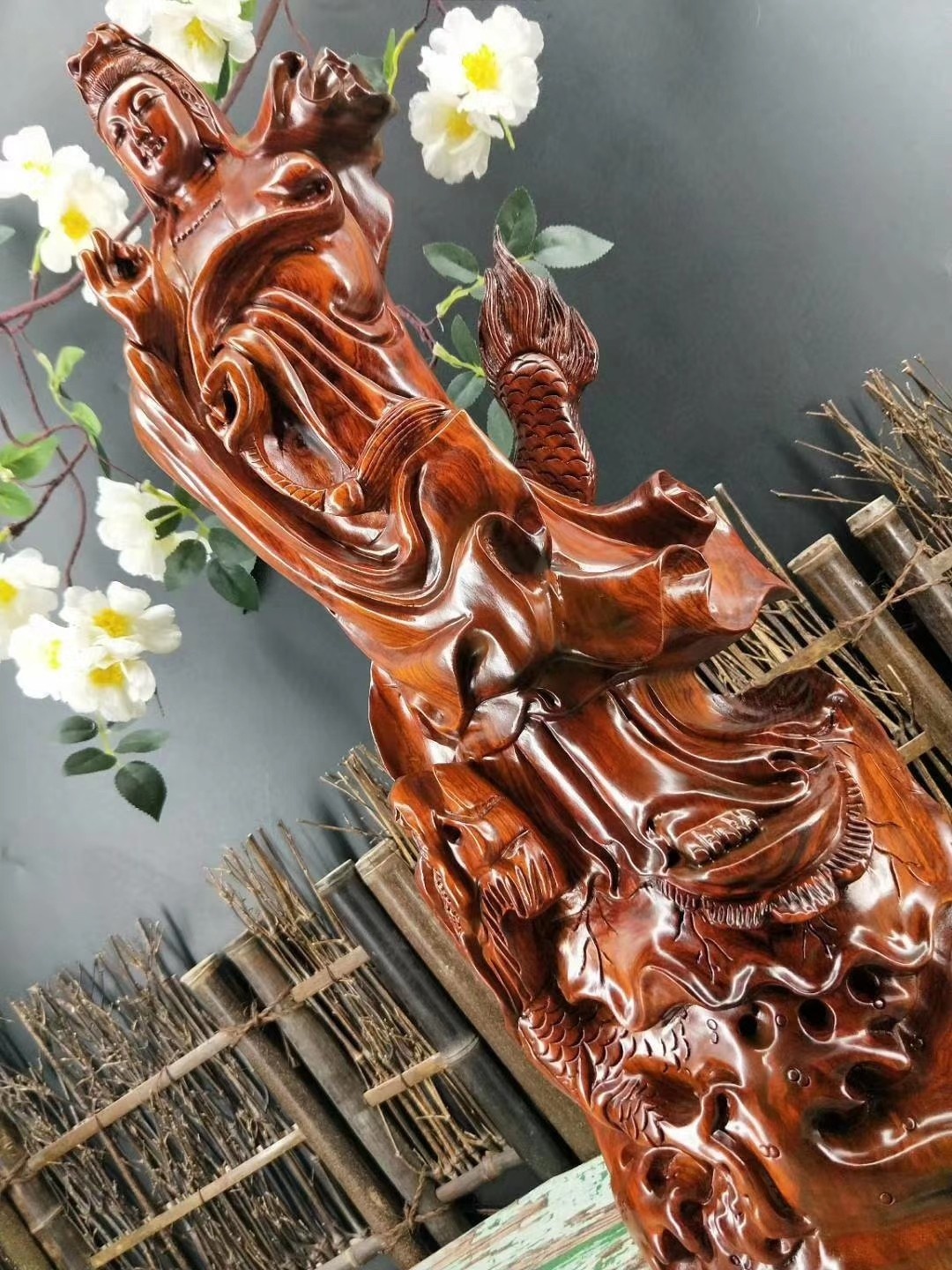 Flower pears wood carving auspicious dragon Ruyi Guanyin statue Statue Buddha Statue of the Buddha Town Residence House dedicated to the new Pendulum Ware Gift