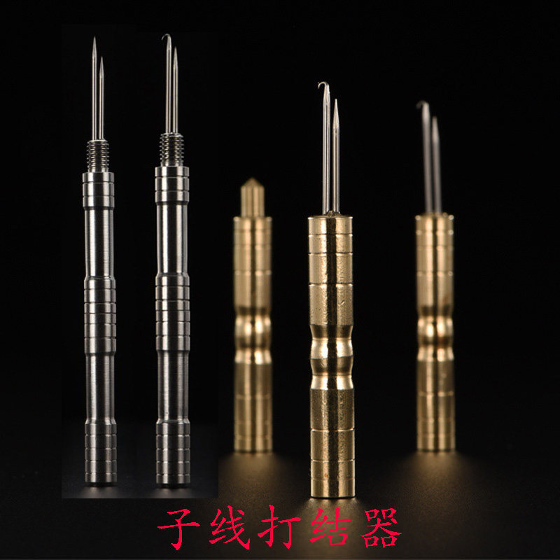 Stainless steel sub-wire knotter tie thread pick needle double head pull needle metal curved hook fish wire knotter mahogany wire ruler