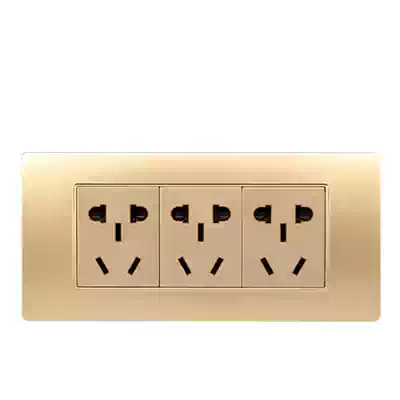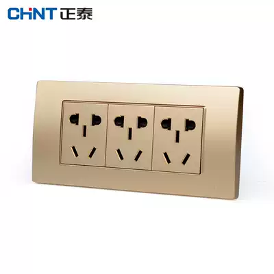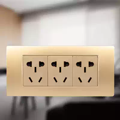 Zhengtai 118 type steel frame Champagne dazzling gold three-position 15 fifteen-hole switch socket three-position three-plug 9 nine-hole