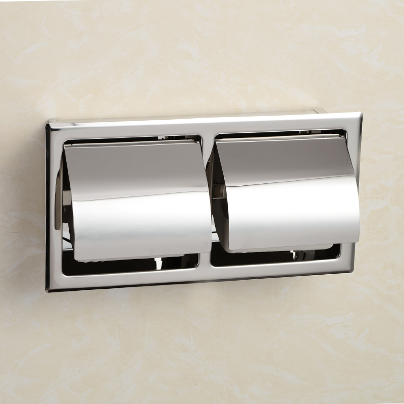 304 stainless steel wall-into-wall roll box rack double row concealed tissue holder toilet hand paper holder H9011