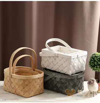 Real color white wood chip flower basket wooden wood chip flower arrangement flower basket fruit basket gift storage model basket