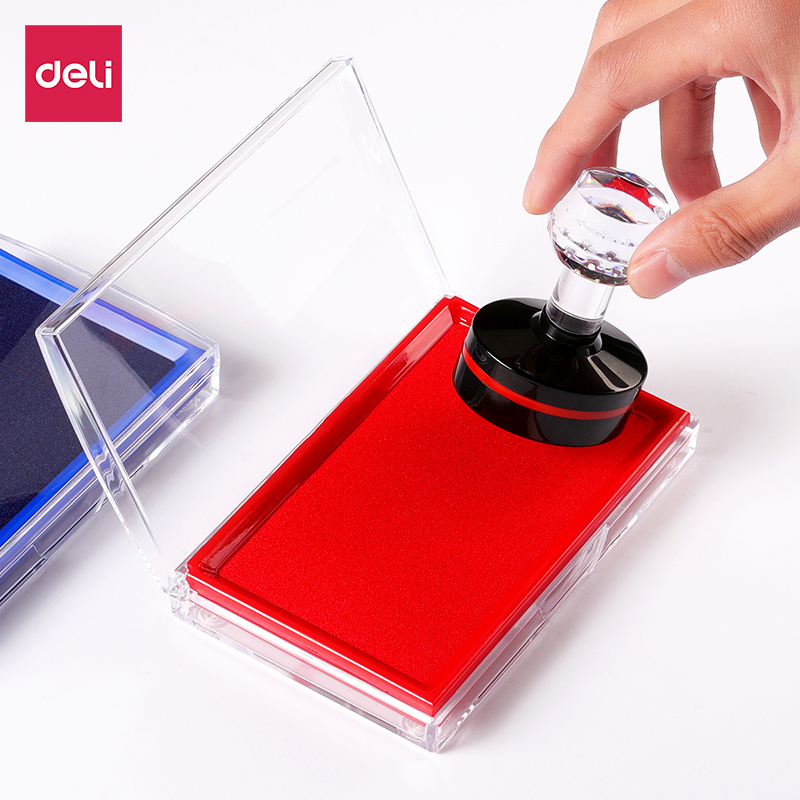 Deli printing clay black printing table fast drying printing table transparent rectangular large red blue financial office supplies printing clay box red printing clay press handprint red printing oil s Indonesian seal clay