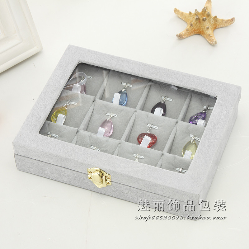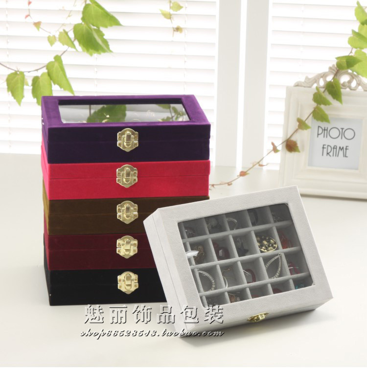Black earrings display box Glass cover jewelry box Simple ear - nail plate box ring 24