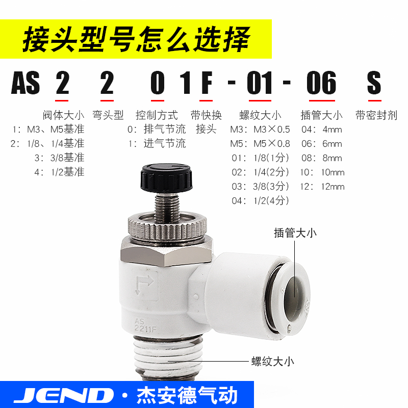 Cylinder throttle valve pneumatic fittings AS1201F 2201F 3201F-M5 01 02-04A 06A