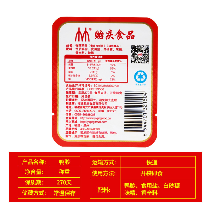 (Yiqing Food) Fujian specialty snacks Braised snacks Spicy braised duck gizzard Duck gizzard vacuum independent 10 pcs