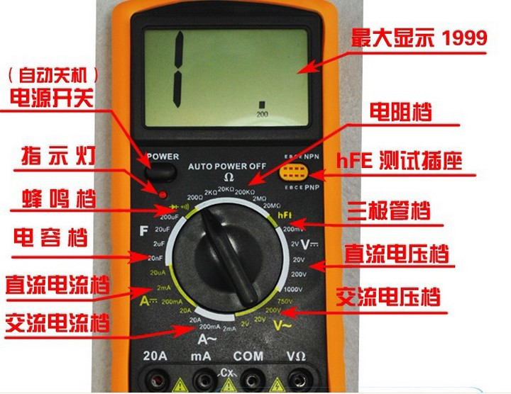 DT9205A multimeter DT-9205A large screen buzzer anti-burning automatic shutdown multimeter 0 35KG