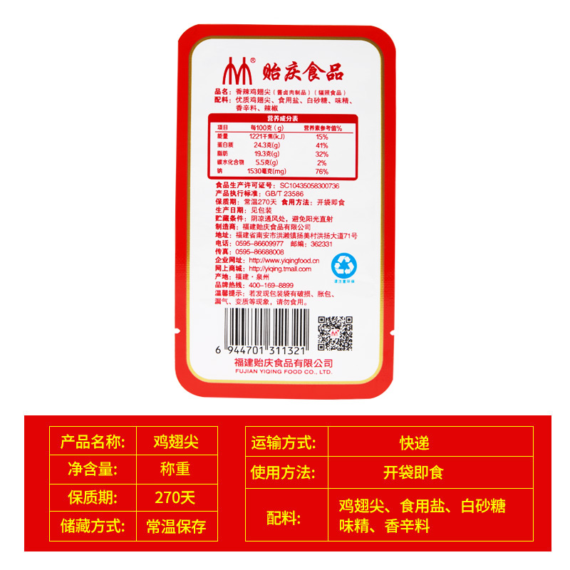 (Yuqing Food) Specialty Snacks Marinated Cooked Snacks Spicy Marinated Chicken Wings Tip Vacuum Independent 10 Pack