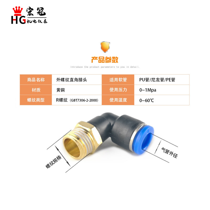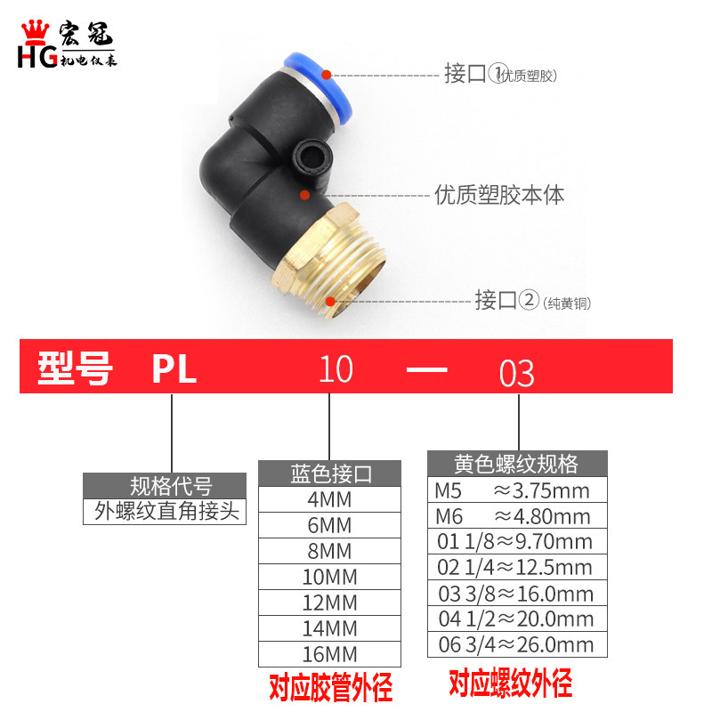 PL pneumatic trachea quick insertion elbow PL8-02 4-M5 6-01 10-04 external thread right angle quick joint