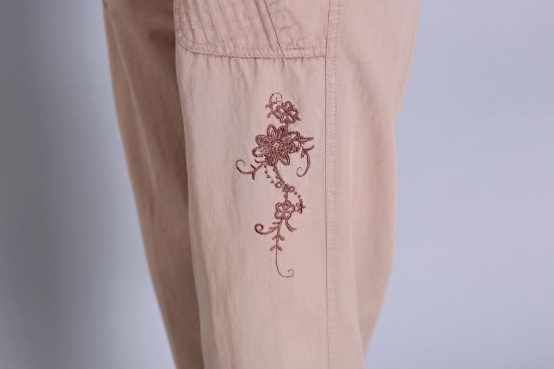 Mid-aged women's clothing Pants Full Cotton Tightness Pants Spring Summer Pants Pure Cotton Embroidered Comfort 90% Pants Large Size Women Pants